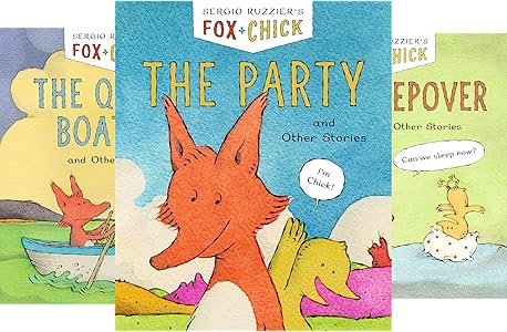 Sergio Ruzzier’s 4 books about two best friends, nonstop Chick and logical Fox — Up and Down; The Party; The Quiet Boat Ride; The Sleepover—are a perfect series for a beginning reader. Each book has 3 short Chapters that play on the title’s themes, filled with sight words, word blends, rhyming endings, basic punctuation marks.…